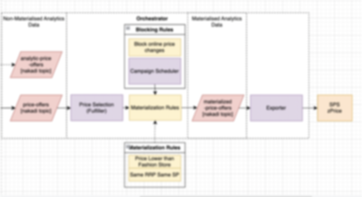 In this delivery-driven process, we took into account the price offers from different data sources, separated price sources based on which prices will be published, proposed the application of calculation rules on them, and separated the prices that will remain unpublished. After that, we designed a solution to materialize the published prices to export them to Simple Price Service (SPS).