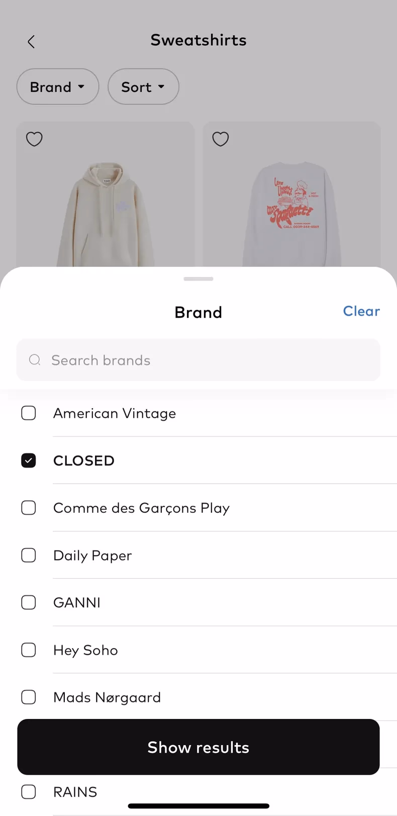 - Filters: With Brand and Sort Filters, users can Sort products by New-in, Lowest, and Highest Prices and filter by various brands on the App.