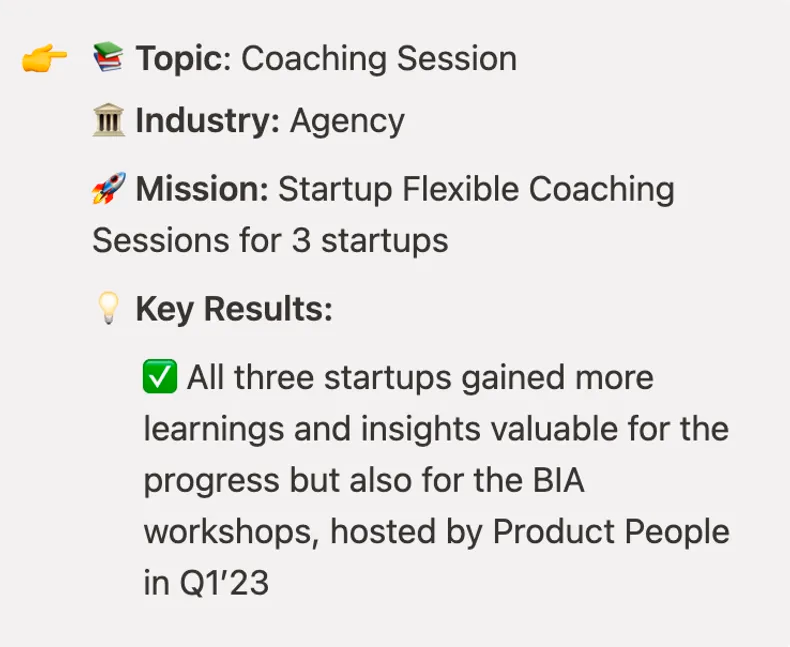 💡 All three startups gained more learnings and insights valuable for the progress but also for the BIA workshops, hosted by Product People in Q1’23.