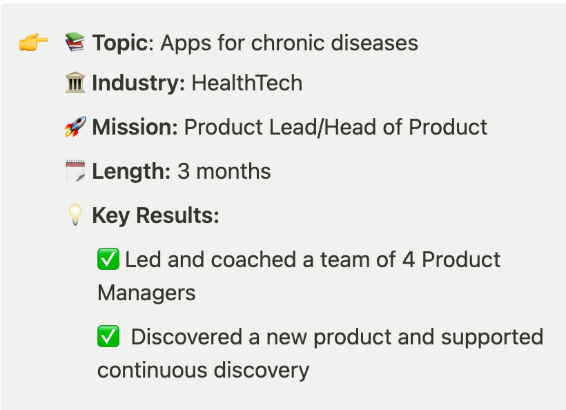 The main focus of the mission was to support PMs in the goals that were relevant to their product and support each of them individually with their professional development.