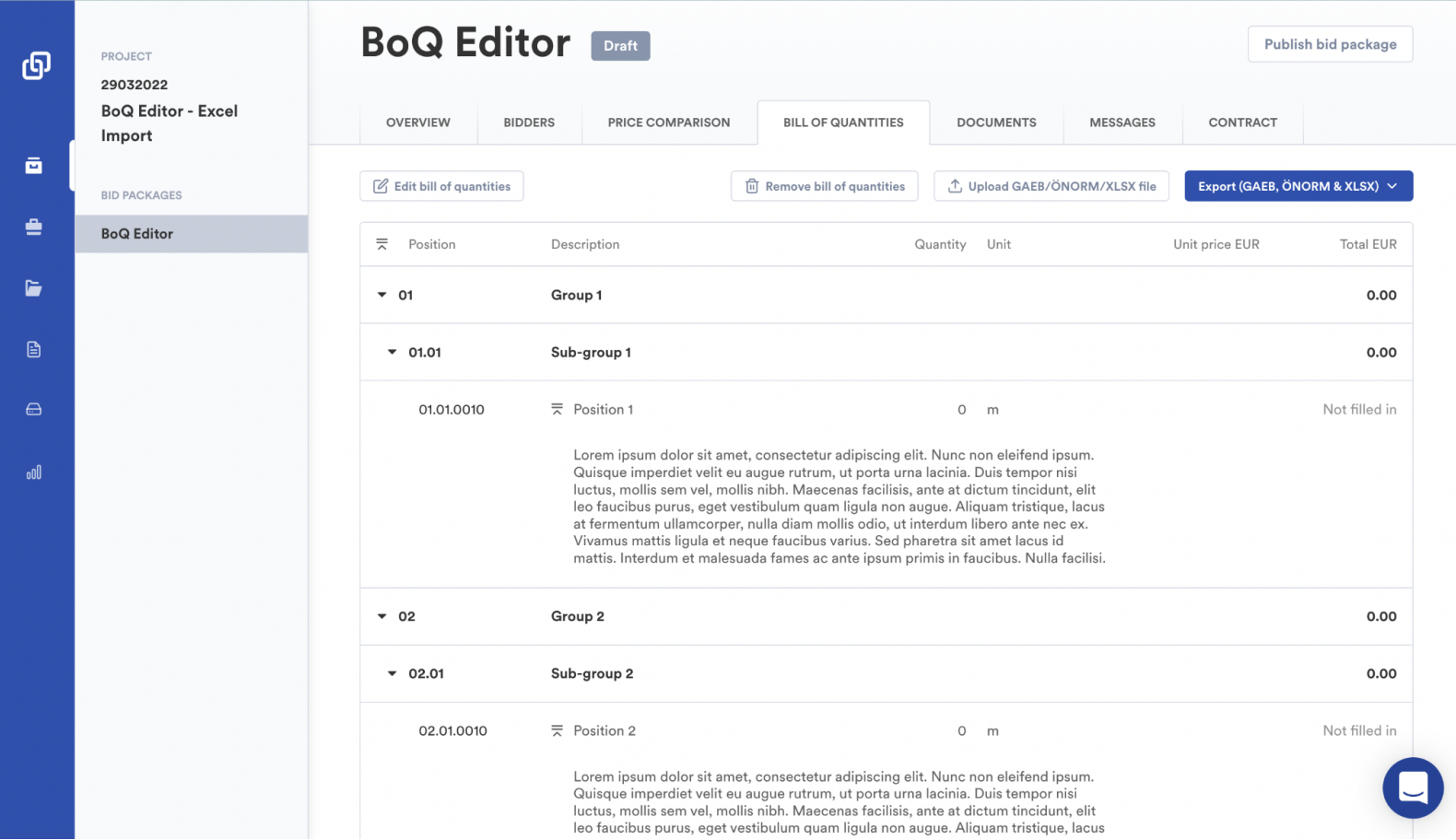 For approximately three months, we focused on improving the functionality of the Bill of Quantities (BoQ) component.