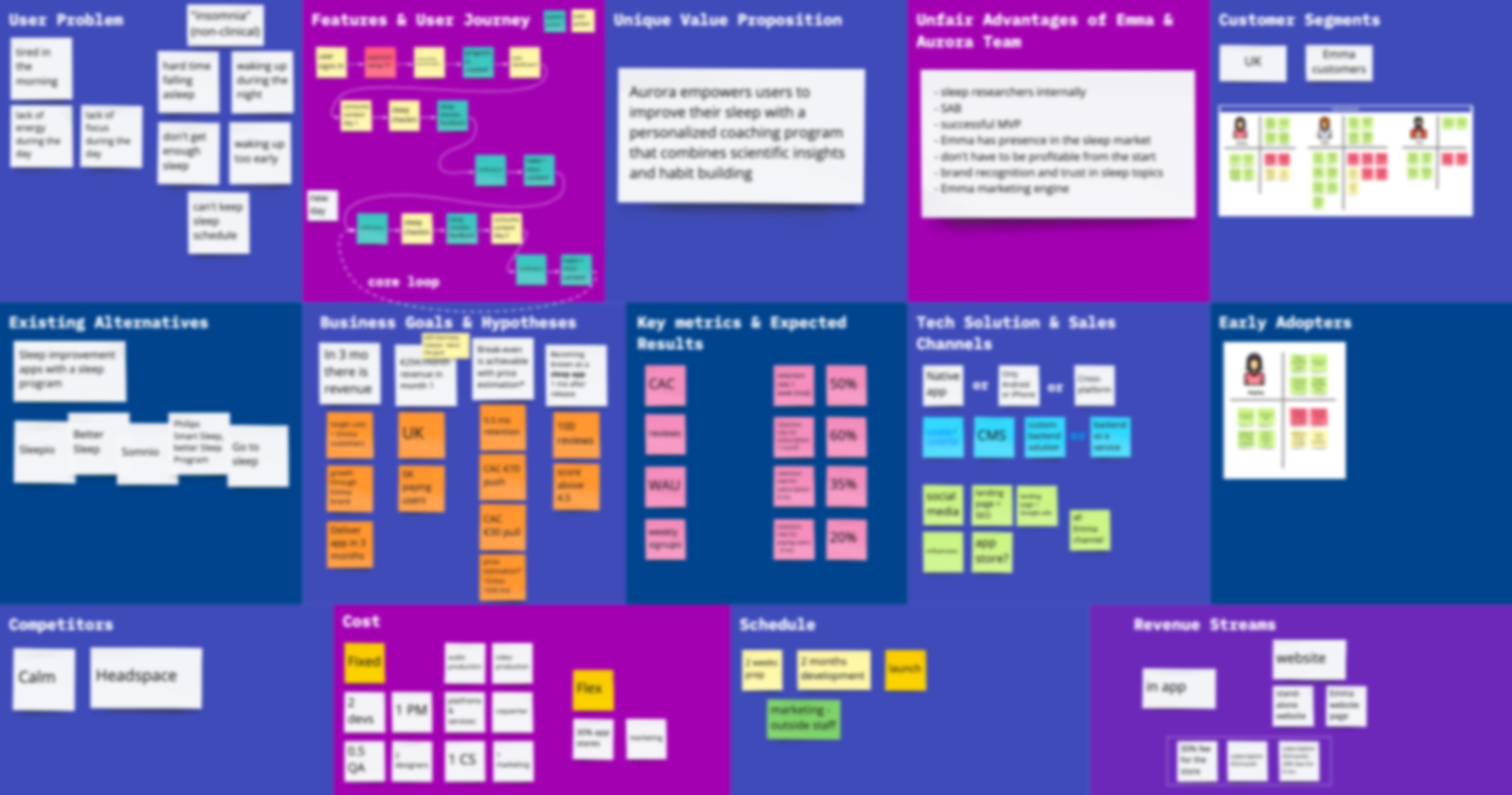 One of the most challenging parts was to define what problems were out of scope. As part of Emma’s vision, they wanted to build an app that could support people’s sleep, but the hardest question was to define in what way.