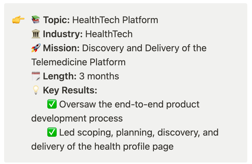 💡 Led scoping, planning, discovery, and delivery of the health profile page and home diagnostics platform.