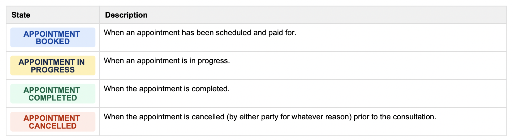 These were then mapped out against the different appointment states in order for us to understand the required information that needs to be captured to book an appointment from a regulatory perspective.