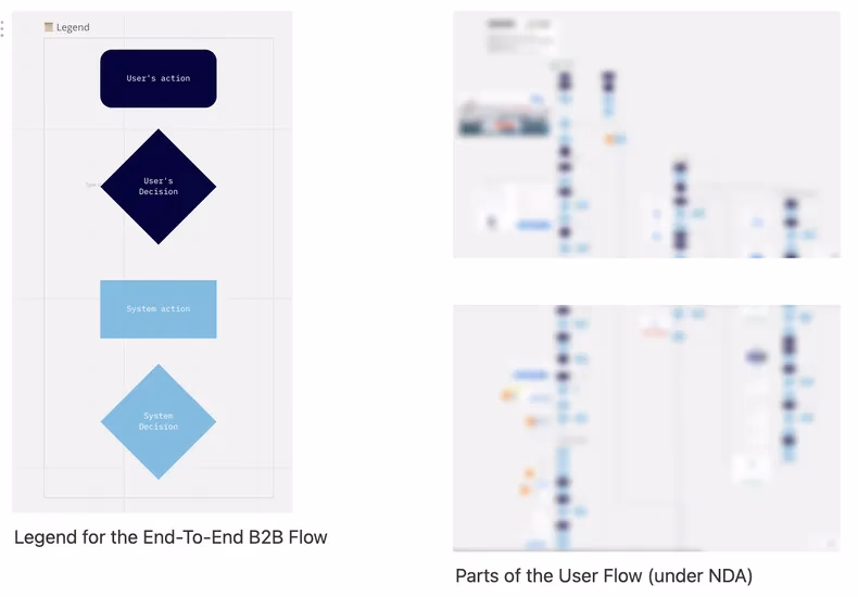 We onboarded on an existing product, so we looked at what was working, analyzed the metrics, and mapped the End-to-End B2B Flow to fully understand the current customer journey.