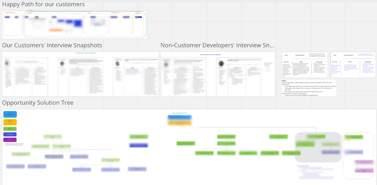 - The feedback was synthesized into interview snapshots, laying the groundwork for the Opportunity Solution Tree (OST). The OST helped in identifying and focusing on key opportunities by considering the intersection of customer needs, product outcomes, and market trends.