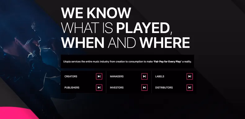 Utopia Music is a Venture Capital-Backed company based in Europe, with headquarters in Switzerland and offices in Denmark, Finland, Norway, and Sweden. The company's ecosystem uses artificial intelligence and data transparency to improve entertainment productions while tracking music metadata and attributing royalties. It was founded in 2016 solely for the music industry with the vision of ‘Fair Pay for Every Play.’